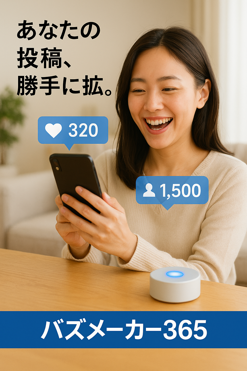 | 「バズメーカー365」は、SNSの投稿を自動で最適化し、拡散力を高めるAI搭載デバイス&アプリ。 文章表現、画像加工、投稿時間、ハッシュタグ選びまで全てAIが診断し「バズる確率」を引き上げます。... |