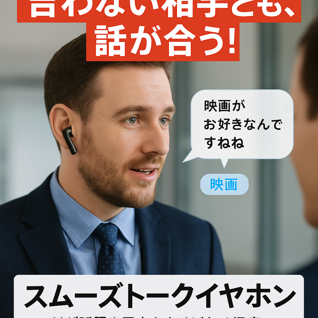 | 職場で「何を話しても噛み合わない…」という人は必ずいます。無理に合わせても疲れるし、避け続けるのもストレス。 「スムーズトークイヤホン」は、AIが相手の会話をリアルタイムで分析し、相手が好む話題... |