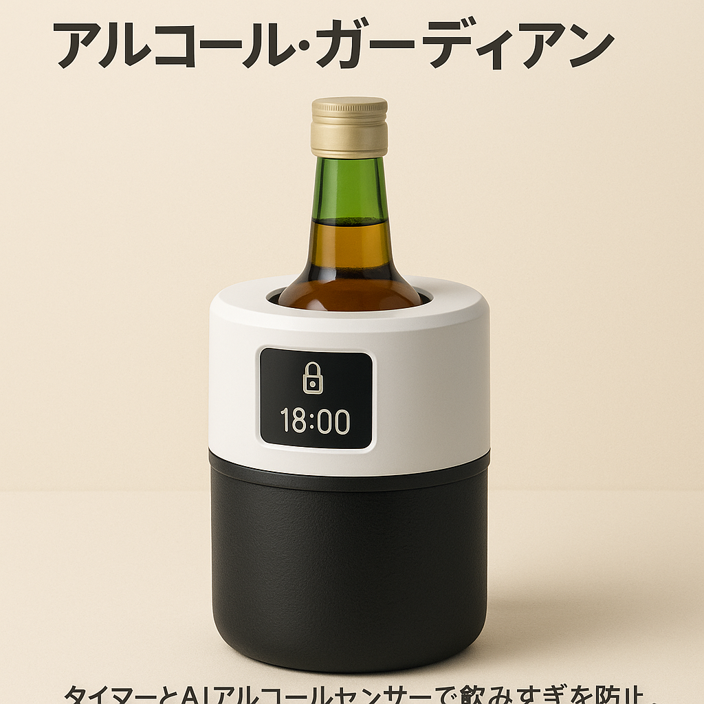 | お父さんのお酒の飲みすぎを防ぐ未来型の「スマート酒ボトルホルダー」。 タイマーとAIアルコールセンサーを搭載し、指定した時間以降は自動でロックがかかります。さらに中身を自動計量し、飲んだ量をアプ... |