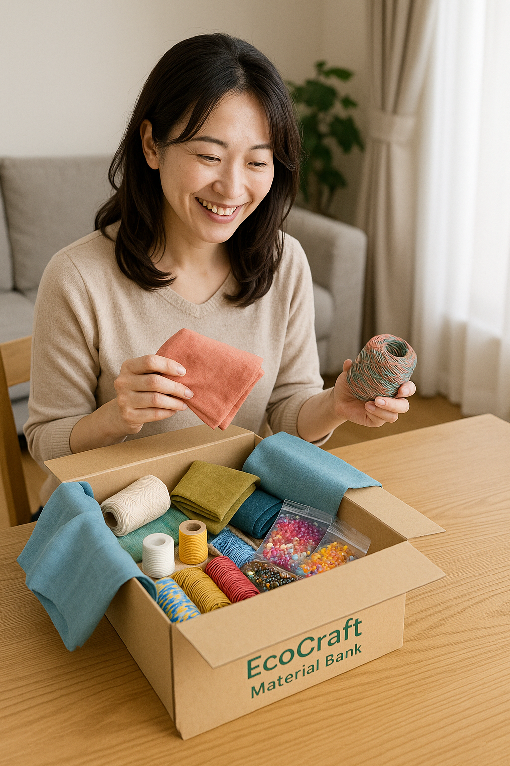 | 「エコクラフト・マテリアルバンク」は、手芸材料を“借り放題・交換し放題”できる新しい定額制サービス。 糸・布・ビーズ・レザー・ボタンなど、多彩な素材を専用キットで毎月自宅に届けます。使い終わった... |