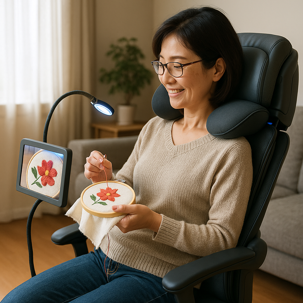 | 「StitchEase」は、手芸愛好家のために開発された“疲労軽減型ワークチェア&サポートシステム”。 首・肩を自動でサポートするエアクッションと、手元を明るく照らすブルーライトカットLEDラン... |