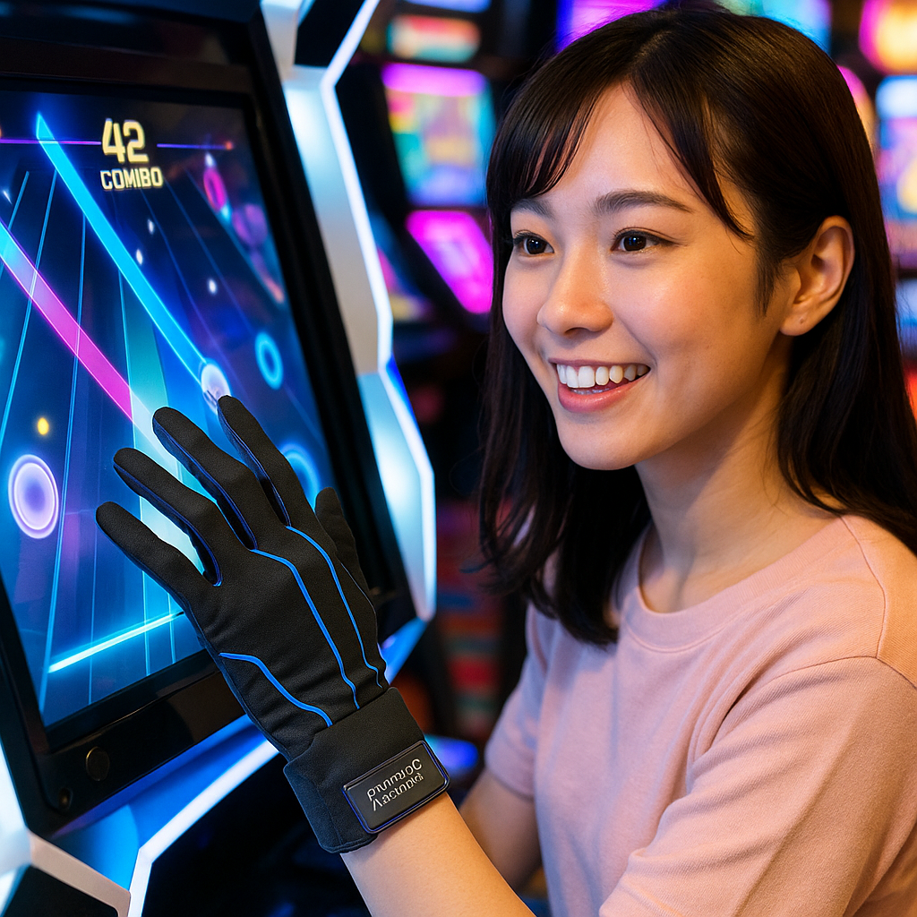 | 「リズムアシストグローブ」は、リズムゲーム専用のスマートグローブ。 センサーとAI補正機能を搭載し、プレイヤーの指の動きをアシストしてくれます。 高難易度曲での“押しミス”や“指の追いつか... |