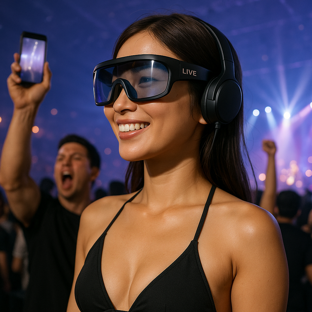 | 「ライブ・シールド」は、コンサート会場での“迷惑行為”からあなたを守る未来型デバイス。 特殊なARフィルター付きメガネと指向性サウンドシステムを搭載し、前方にスマホを掲げている人や大声で叫ぶ人を... |