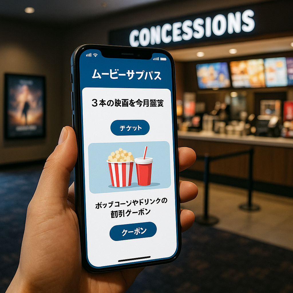 | 「ムービーサブパス」は、映画館をもっと身近にするサブスク型チケット&飲食パス。 月額制で、毎月3〜5本の映画を観られるチケットに加え、ポップコーンやドリンクの割引クーポンも自動付与。 スマホア... |
