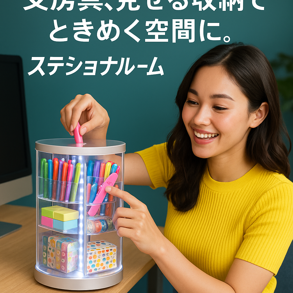 | 文房具好きのために作られた、回転式の“見せる収納タワー”。 360度回転しながら、ペン・付箋・テープ・シール・マーカーなどをカテゴリー別にスッキリ収納できます。透明パネルとライトアップ機能で“コ... |